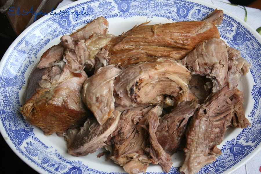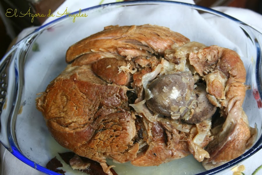 Ya lo había hecho asado pero quería probar a cocerlo.Se planteaba el problema del tamaño de la olla y el carnicero, con buen criterio,me recomendó cortarlo en dos y así lo hicimos.