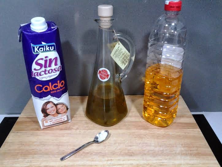 Chorrito de vinagrePonemos la leche en el vaso de la batidora con la sal. Echamos poco a poco el aceite y vamos batiendo sin mover el brazo de la batidora. Una vez veamos que comienza a emulsionar movemos el brazo de la batidora arroba y abajo para que se integre todo bien. Al final echamos un chorrito de vinagre, removemos un poco mas y listo.
