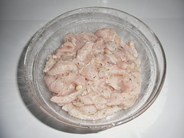 Lavamos las pechugas, las secamos, las cortamos a tiras y reservamos.