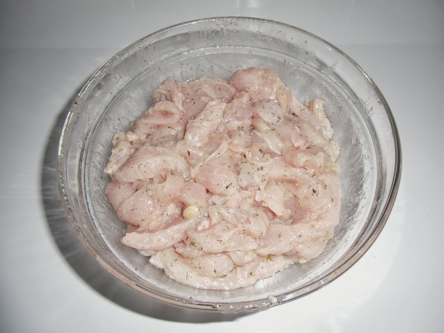 Incorporamos el pollo, lo mezclamos todo muy bien y dejamos macerar en la nevera 3 o 4 horas.