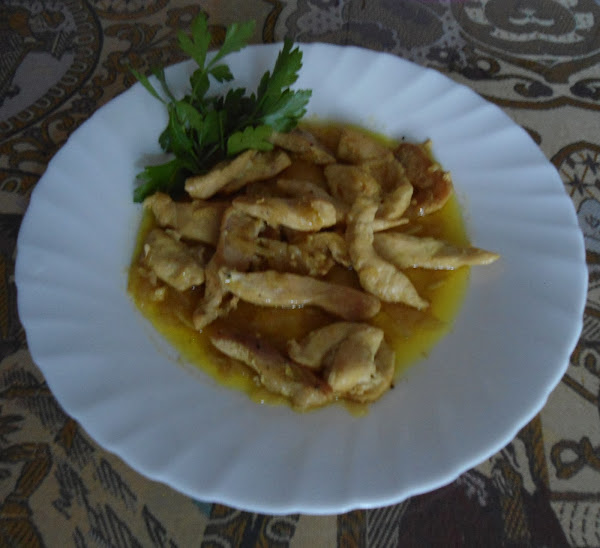 Lavar la pechugas de pollo y cortarlas en trozos no demasiados grandes, lo salpimentamos, en una sarten echamos aceite, lo pasamos y lo dejamos bien dorados, una vez que terminamos de dorar todos los filetes reservamos.