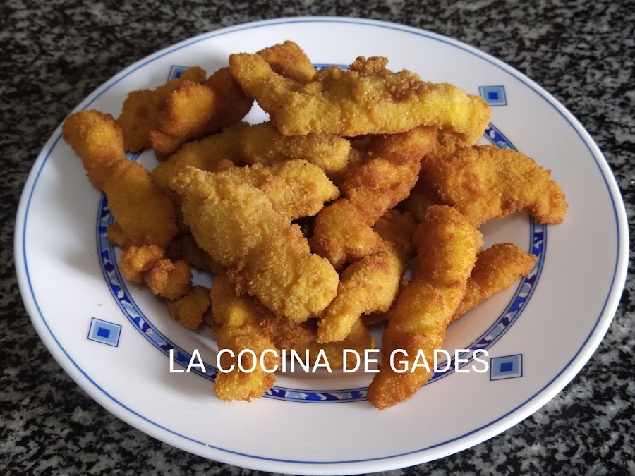 Escurrimos las tiras de pollo y empanamos con harina, huevo y pan rallado, freímos con aove, escurrimos con papel absorbente y listo para comer.