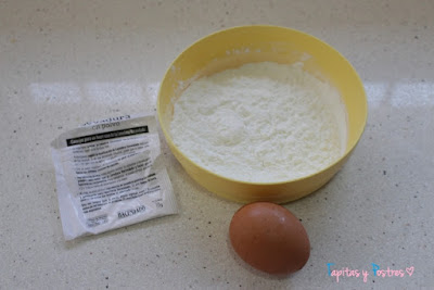 Preparamos unas "gachas" con el huevo, la harina de maíz y la levadura. Debemos dejar una crema fina, sin grumos.