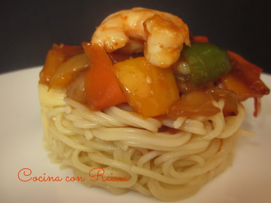 He visto recetas ricas pero me he decidido por estos langostinos, me gusta mucho el contraste agridulce y lo acompañé de unos ricos espaguetis.