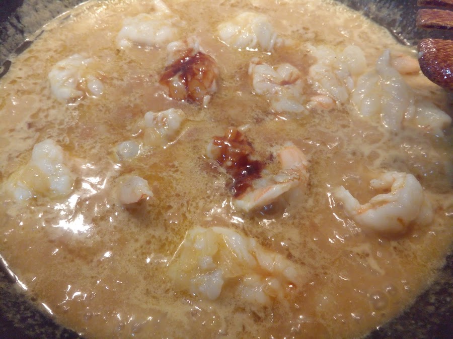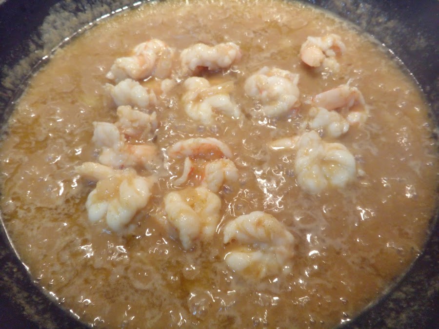 Colocar dentro de la salsa los langostinos, añadir la salsa de ostras, remover