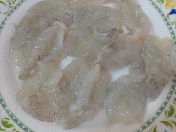 Pelar los langostinos, hacer una incisión a lo largo del lomo y retirar el hilo intestinal. Enjuagar y reservar.