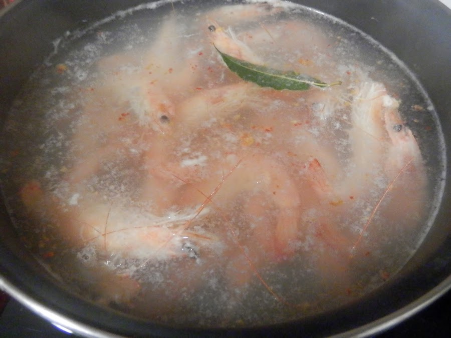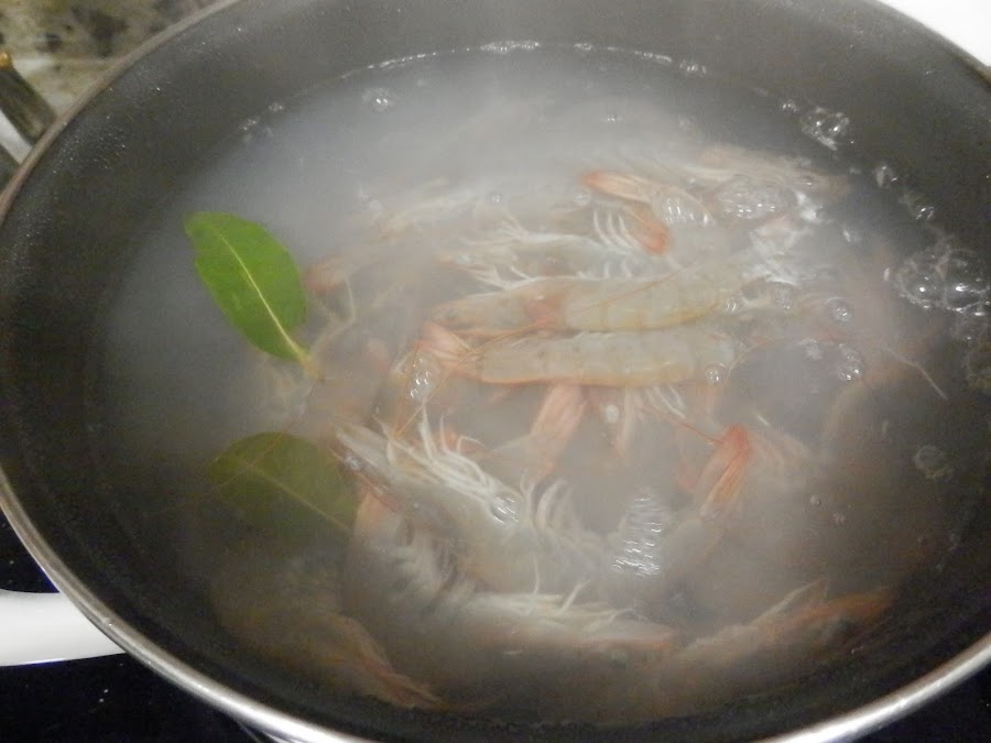 Dejamos que eche a hervir el agua y entonces, añadiremos los langostinos crudos.