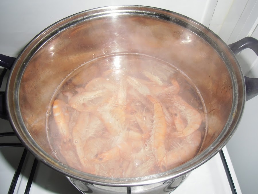 En una olla ponemos a hervir otros 5 litros de agua y cuando esté hirviendo complétamente incorporamos los langostinos