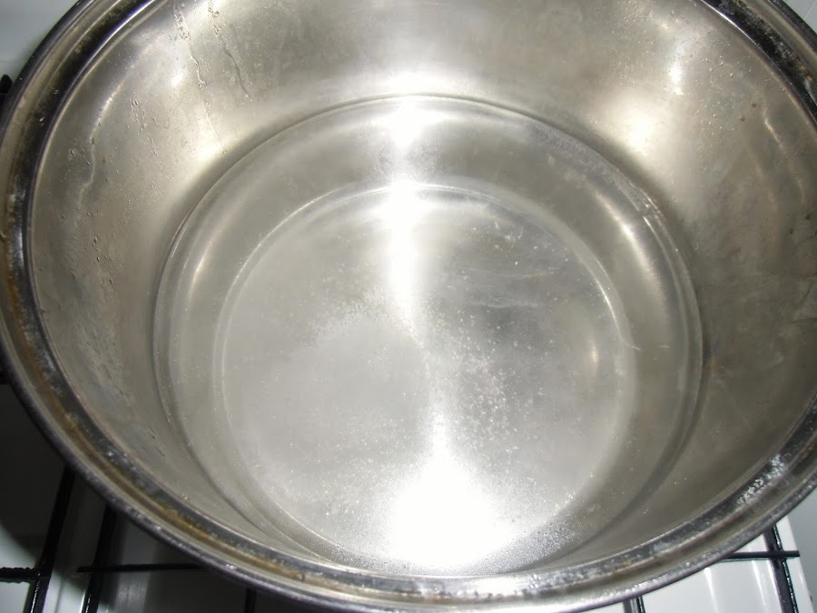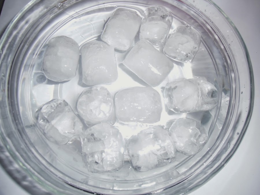 En un recipiente grande ponemos 4 o 5 litros de agua fría, le echamos un buen puñado de sal y removemos bien para disolverla, añadimos bastante hielo.