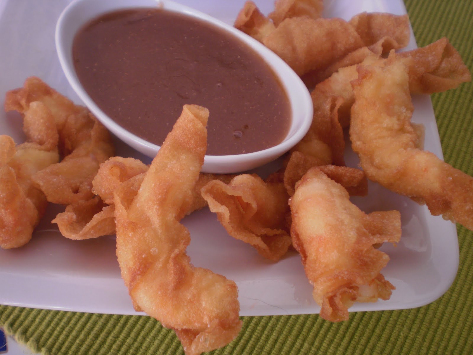 Salar los langostinos al gusto y envolverlos en una hoja de wan ton (o en su defecto pasta filo, cortada en forma de cuadrado), pinchar con un palillo a fin de que no se abran.