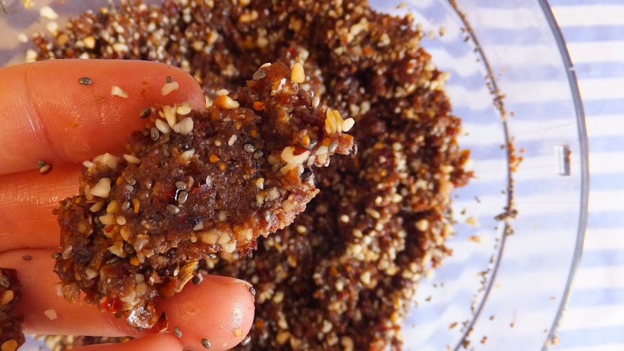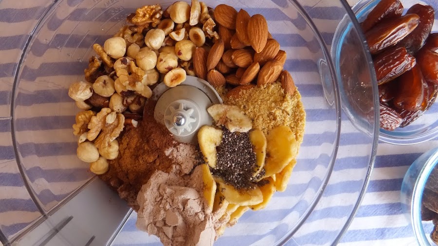 Además de sus cualidades energizantes están deliciosas, de verdad de la buena, gustan a todo el mundo incluso a los que no son muy amigos de las frutas secas ni los snacks saludables. Y si algún ingrediente no te convence puedes adaptarlas a tus gustos personales sin problema, siempre que respetes la base de dátil o fruta seca y frutos secos. Además son tremedamente fáciles de hacer (si se está en posesión de un procesador de alimentos, uno de las inversiones más rentables que se pueden hacer en una cocina) y aguantan siglos en buen estado en la nevera.