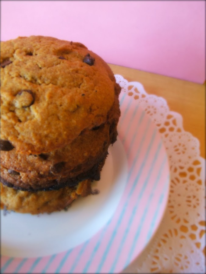 Pues bueno, al morder encuentras el toque crujiente de la parte exterior, sin embargo el interior está blanditooo y jugoso, y tiene ese saborcito a cacahuete y vainilla, y las chips de chocolate ya acaban de engancharte.