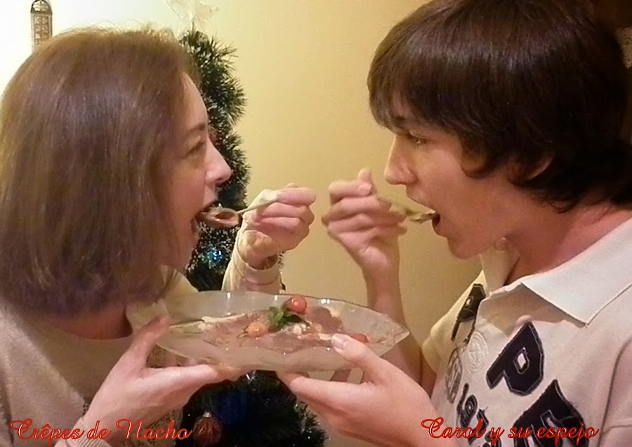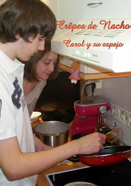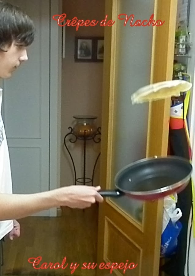 Hola!!!! Como va todo por ahí?? Espero que bien. Hoy os traigo una crêpes maravillosas que ha hecho mi hijo Nacho. Ufffff!!!! Nacho!!! Nacho es mi hijo mayor, un 7 de Julio de hace 15 años nació, fue lo más maravilloso que me había pasado hasta entonces. Ya en mi cabeza no sólo estaba yo, sino que siempre me acompañaría una personita que vayas a donde vayas llevas contigo, y eso será así para siempre. Nació el día de San Fermín, nunca olvidaré al camillero que me llevaba de la habitación al paritorio cantándome.. "1 de enero, 2 de febrero, 3 de marzo.... etc" y me decía ... ¿le llamarás Fermín???? y yo no le contestaba, sólo pensaba ¡¡¡¡¡cuando se callará este hombre!!!!! jajajajjajajaja