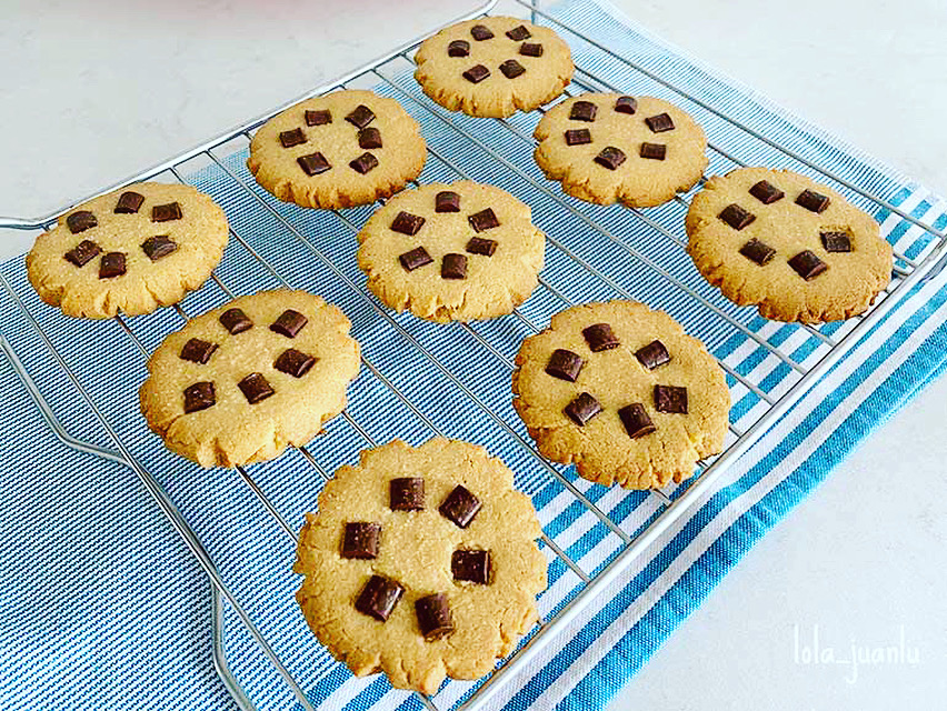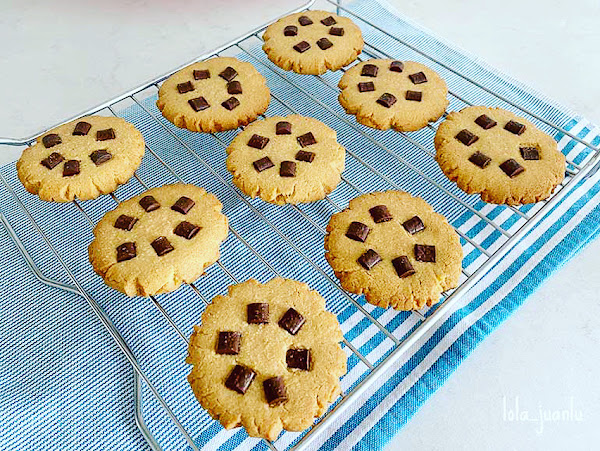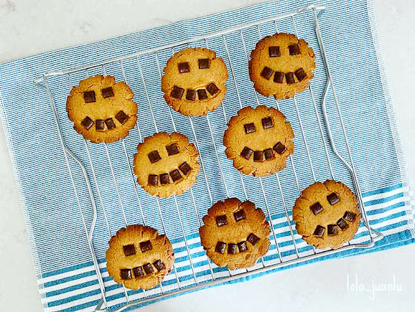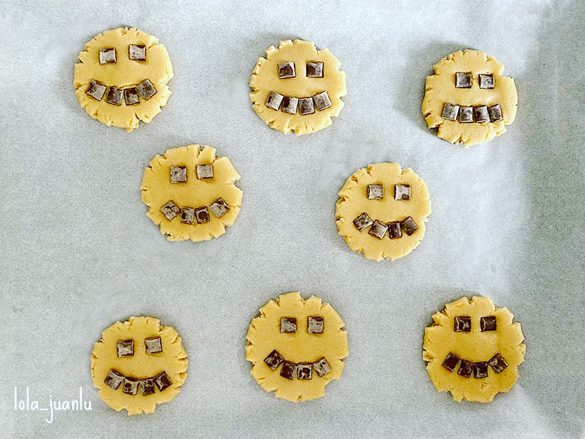 Estas galletas se pueden hacer con caritas sonrientes o darles otra decoración con las pepitas de chocolate.