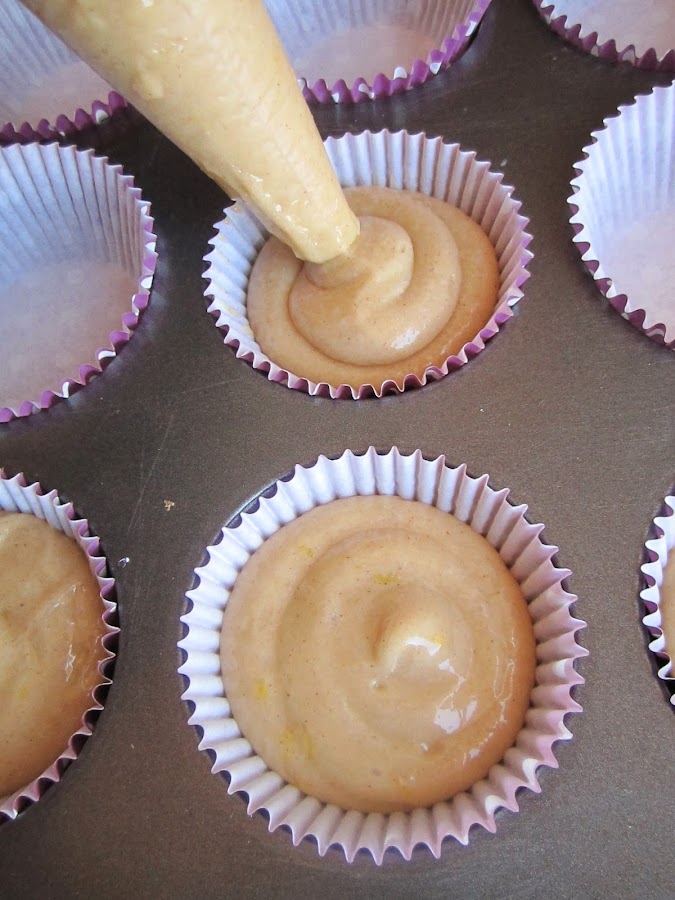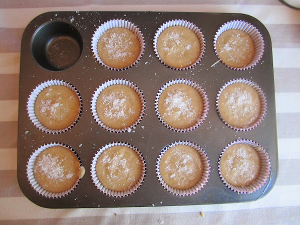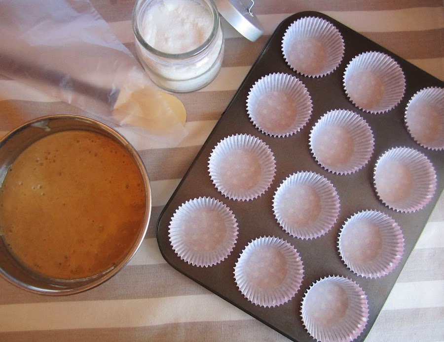 8. Hornea a 170-180ºC (horno precalentado) durante 15-20 minutos o hasta que adquieran un tono dorado y que al pinchar un palillo en el centro de la magdalena, éste salga limpio.