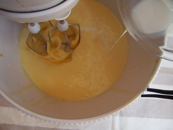2. Cuando haya blanqueado añade los líquidos, el aceite y la leche, a velocidad media y poco a poco, en forma de hilo.