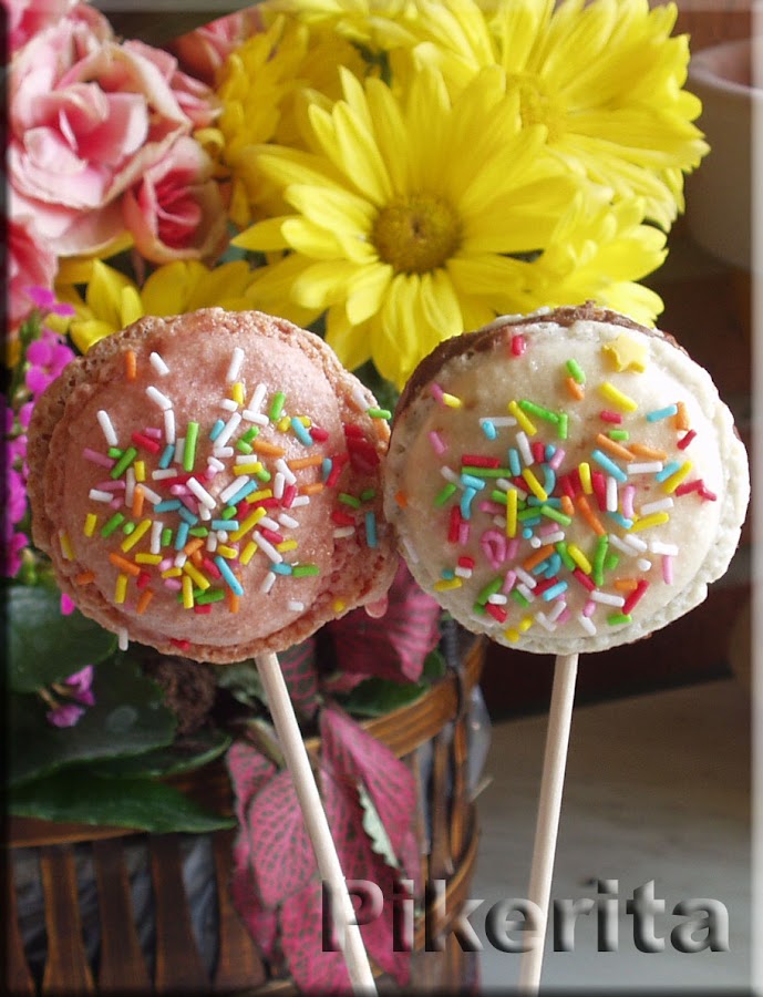 Mirad que original son los macarons de Lourdes, de La cocina de Pikerita, me han parecido muy chulas estas piruletas de macaron!!