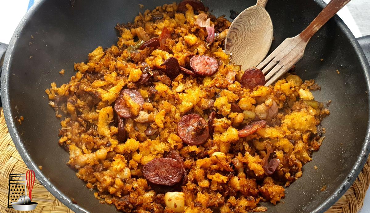 Se van dando vueltas y vueltas a las migas a fuego medio hasta que estén completamente secas. Se prueban de sal a medio hacer y si hace falta se le añade un poquito.
