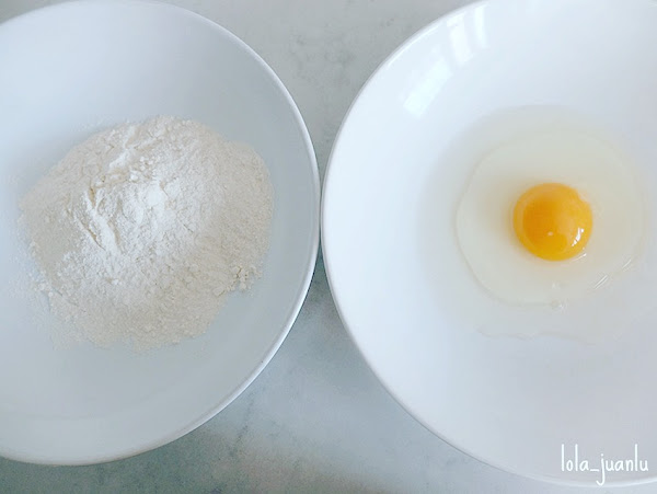 Cuando tengamos hechas nuestras bolas de patata rellenas, las emborrizamos. Para ello batimos en un plato o cuenco un huevo y colocamos un poco de harina en otro. Pasamos las bolas, una a una, por el huevo y luego por la harina.