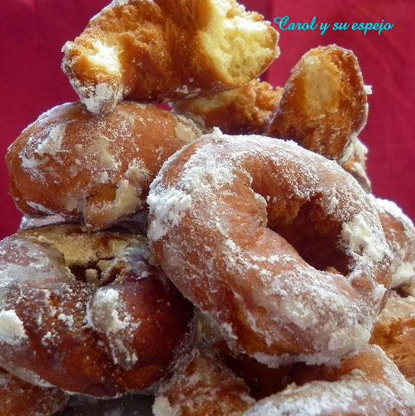Hacer rosquillos con la masa y freir en abundante aceite hasta que se queden doraditas
