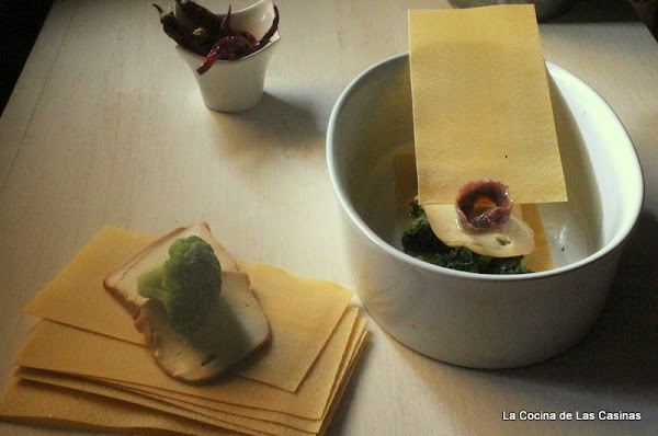 Lasagna de Brócoli, Anchoa, Scamorza y Bechamel: (2-3 px)