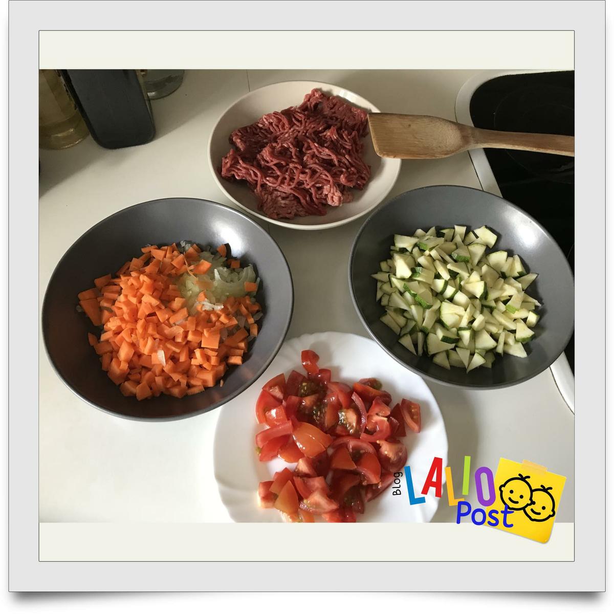 Ingredientes para la lasagna de carne y verduras