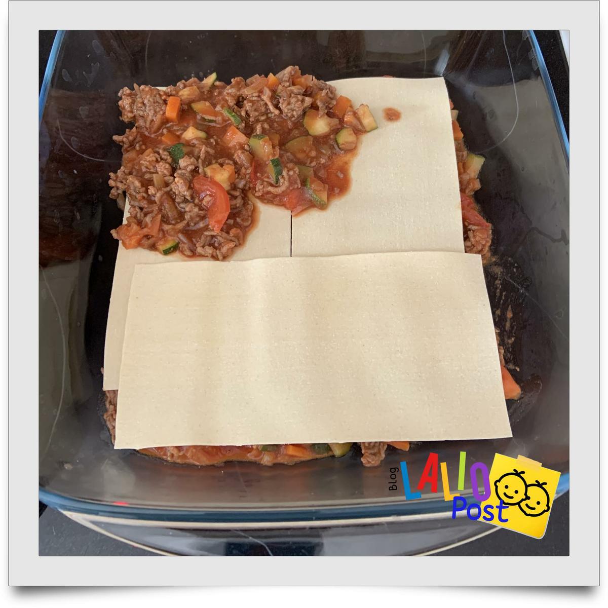 Ya que tenemos nuestro guiso preparado. Preparamos nuestra lasagna.En un refractario colocamos una cama de pasta que cubra toda la superficie del refractario.