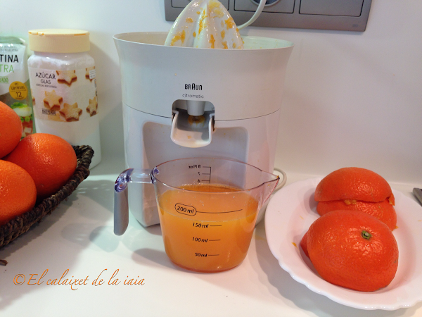 Vamos a comenzar por preparar la crema de mandarina porque habrá de reposar en el frigo al menos dos horas, para que cuaje bien. Comenzamos preparando un zumo de mandarinas