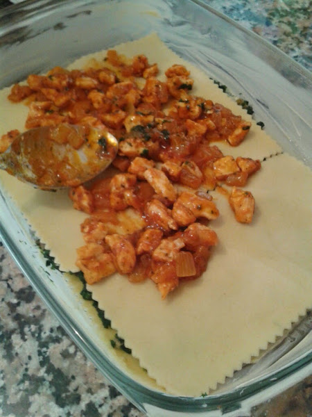 Cubrimos ahora con el pollo, bien extendido.