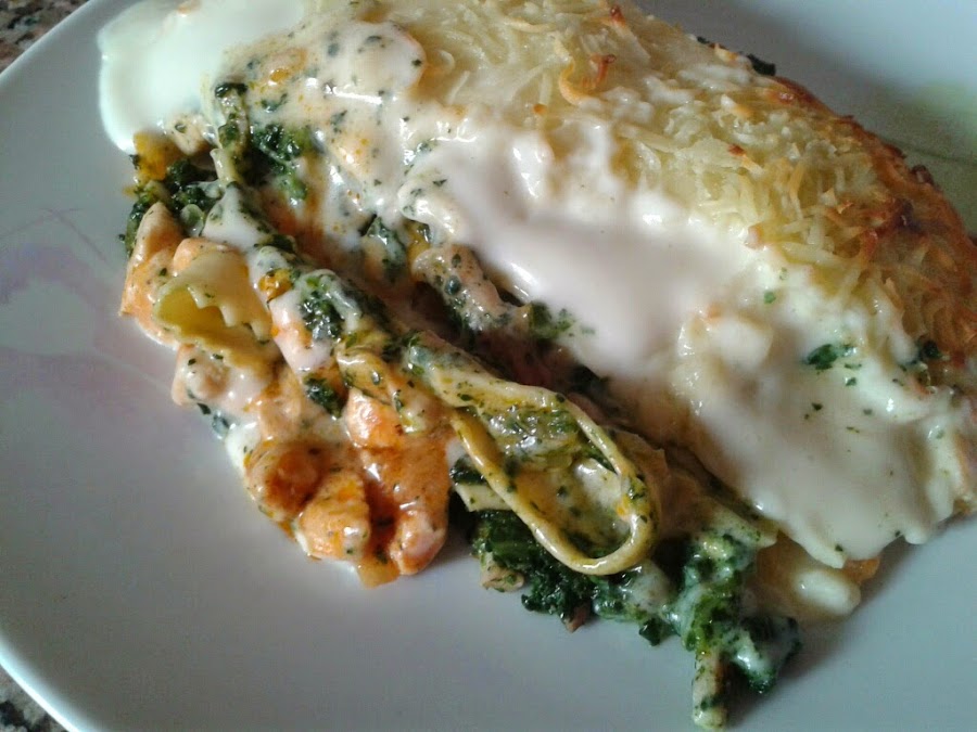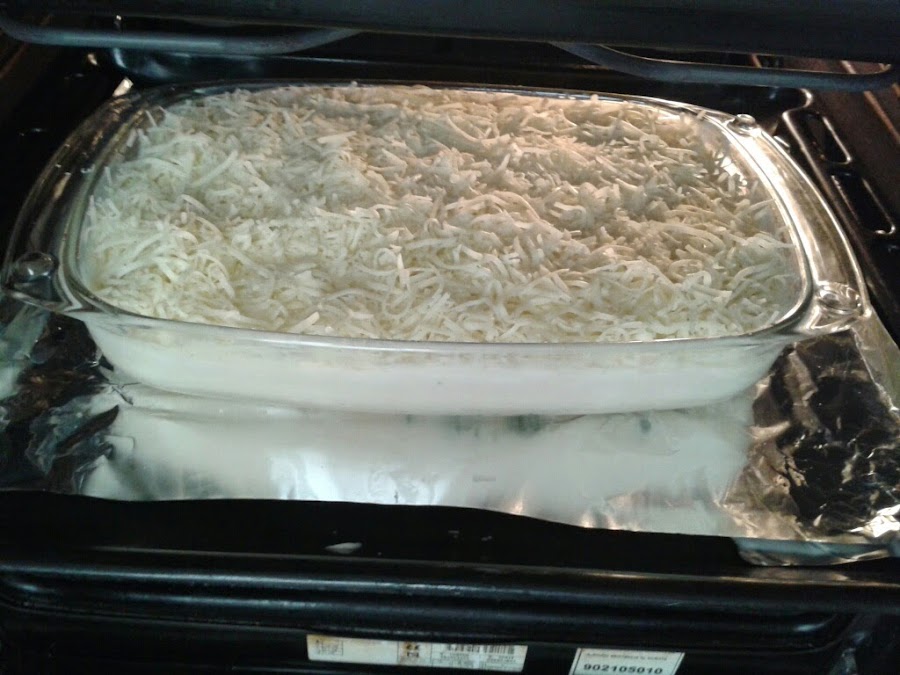 y volvemos a poner espinacas por toda la superficie y ponemos las ultimas 3 placas de lasaña