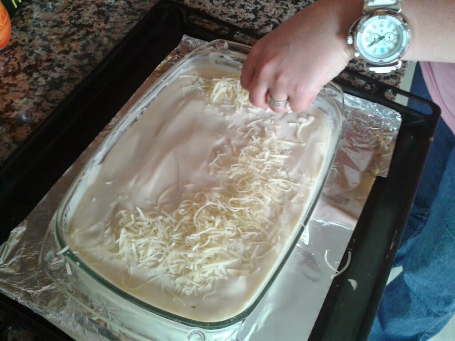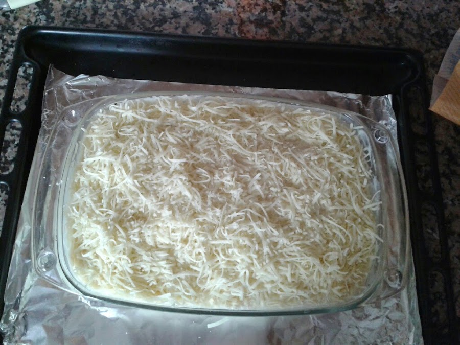 y vertemos la bechamel por encima, al gusto, si os gusta mucho poner mucho, sino pues poco....