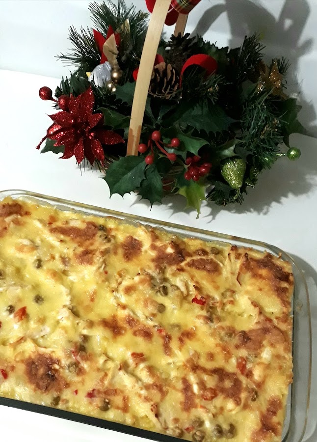 En una sartén grande caliente coloque la mantequilla y cebolla dejar cristalizar luego agregar el chile dulce picado fino y ajo dejar cristalizar luego,agregar la leche,crema dulce dejar calentar,coloque dos tazas del caldo de pollo revolver dejar hervir,colocamos condimento completo,la sal,pimienta,azúcar, vino blanco y los vegetales mixtos revolver colocar el pollo y cocinar 5min más,en un pirex rectangular grande engrasado colocar un cucharon de salsa luego alternar capas de pasta de lasagna precocida,salsa y queso así hasta llenar el pirex,una vez listo cubrir con papel aluminio y llevar al horno a 350grados f por 35min destapado los últimos 15min para que dore un poco,ya lista dejar reposar 12minutos antes de servir.