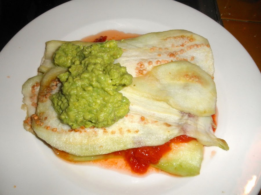 En esta ocasión nosotros hemos añadido el toque de las hierbas aromáticas, como es el caso de la hierbabuena fresca que mejora los procesos digestivos, es aperitiva, carminativa y ayuda a desintoxicar el hígado. También pensamos en aumentar su valor nutritivo y protéico añadiéndole aguacate y que mejor que un delicioso guacamole para rellenar una de sus capas :-)
