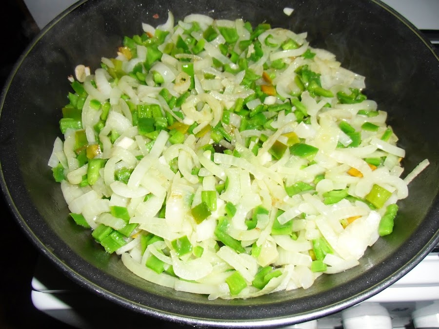 Para empezar ponemos una sartén con un poco de aceite de oliva a calentar, agregamos la cebolla cortada, damos unas vueltas, echamos sal y añadimos los ajos picados.
