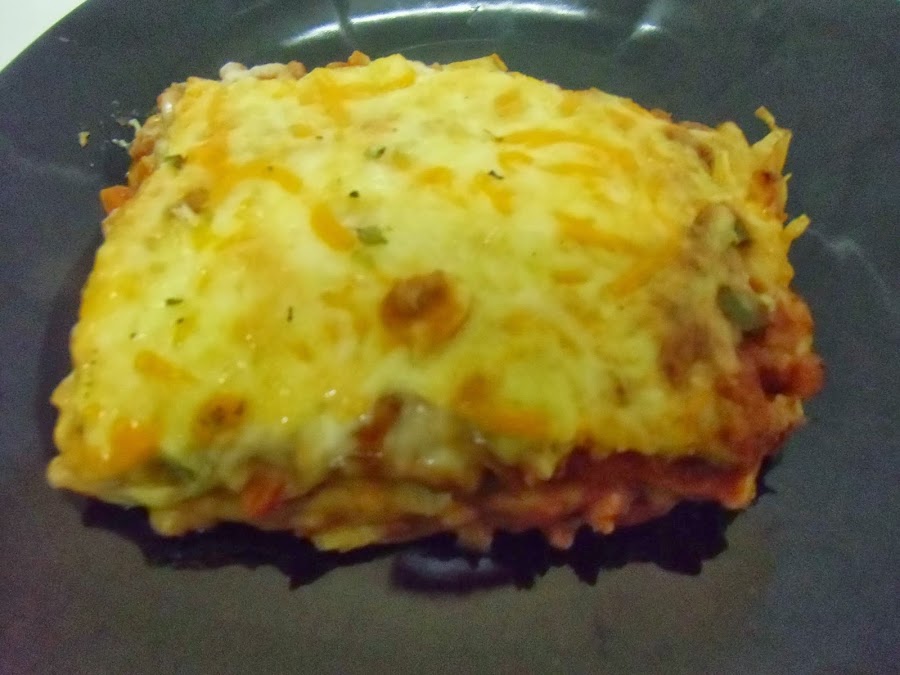 Y así hasta llenar la fuente, cubrimos con queso y metemos en el horno 20 minutos a 180º
