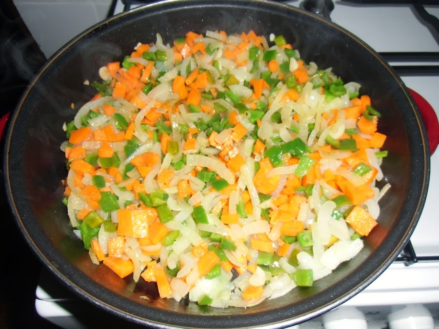 Ahora echamos las zanahorias también cortadas y un poco de pimienta negra molida