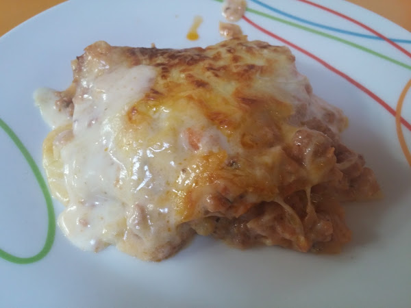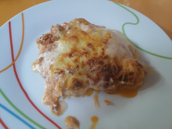 Láminas de lasaña. Yo uso las de Carrefour, que no necesitan cocción y ni siquiera hay que remojarlas, se usan directamente.