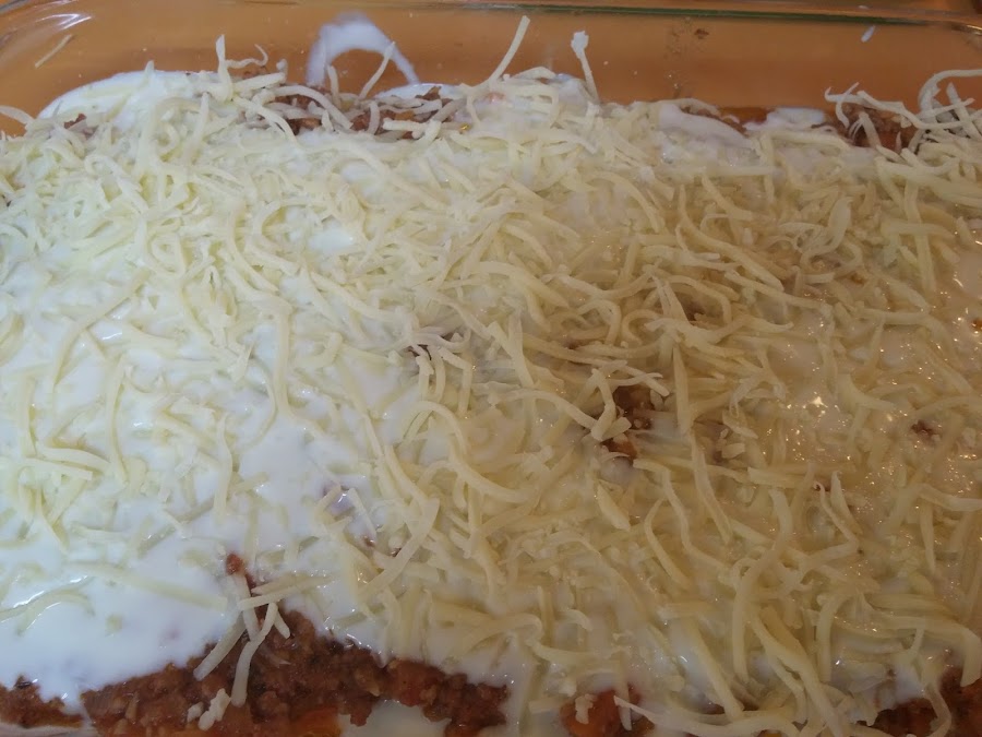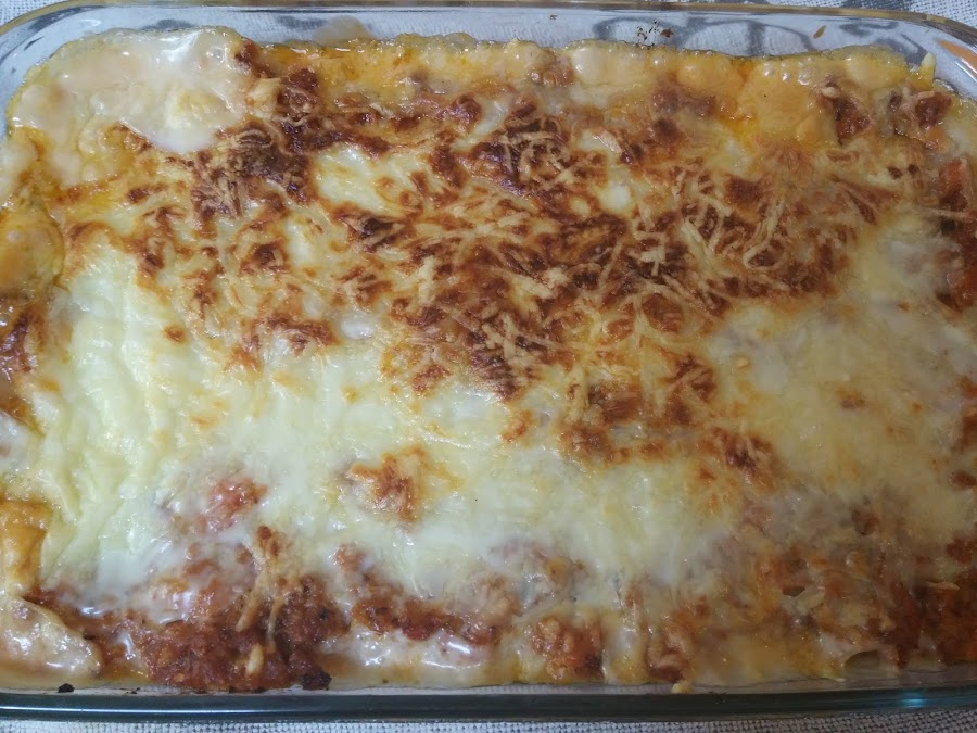 Seguimos así hasta terminar los ingredientes. Y cubrimos con queso rallado.