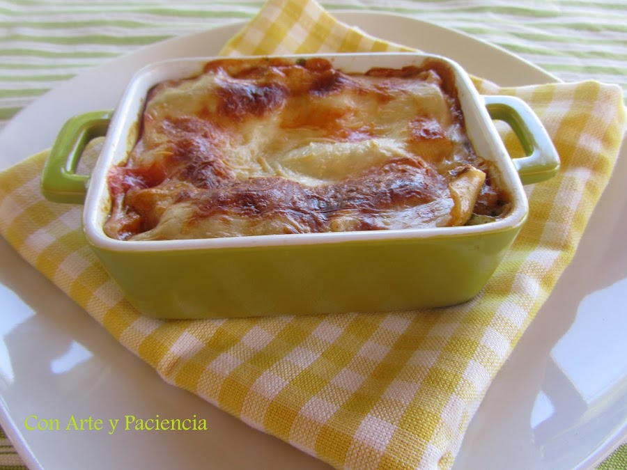 Esta vez os traigo una lasaña muy colorida y suave con ingredientes que solemos usar. La capa de los champiñones o espinacas en si ya es un buen plato pero combinados están aún más buenos.