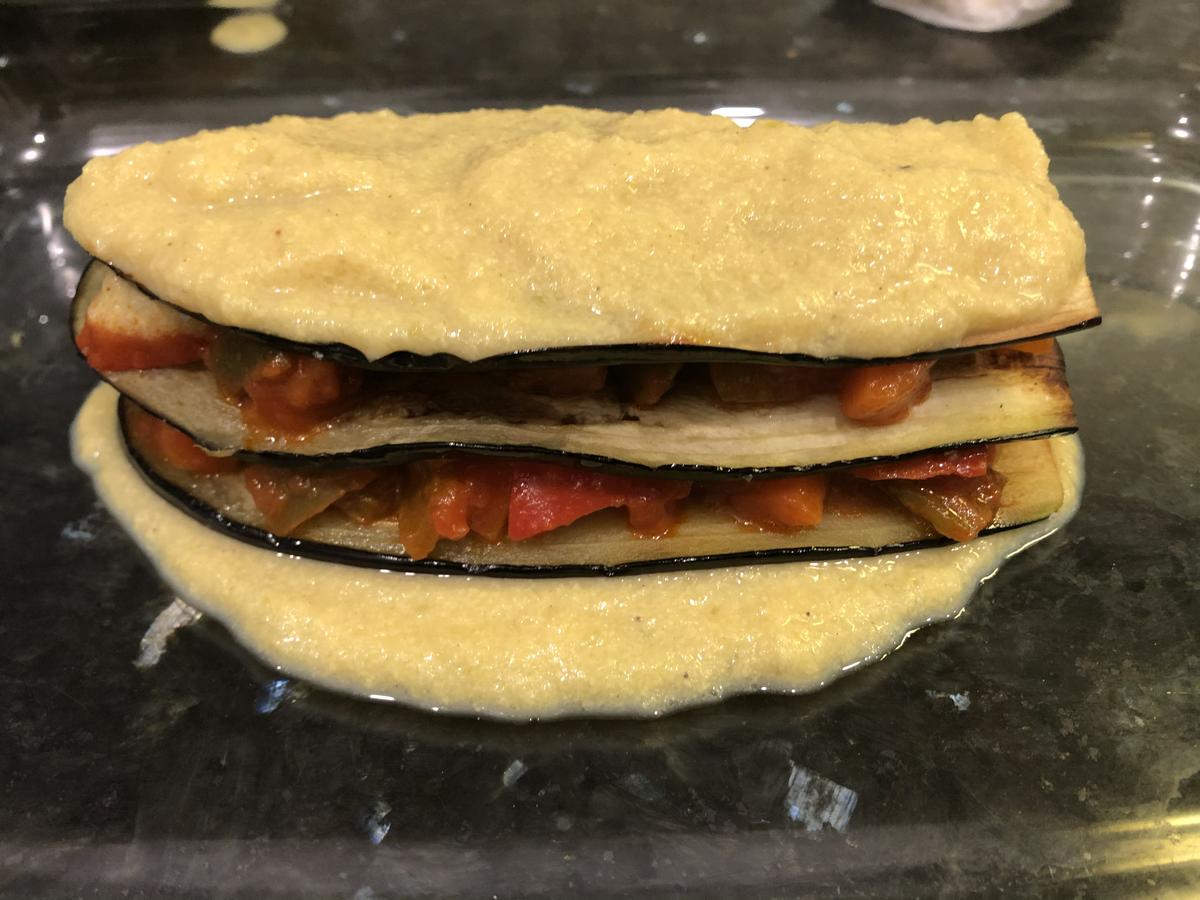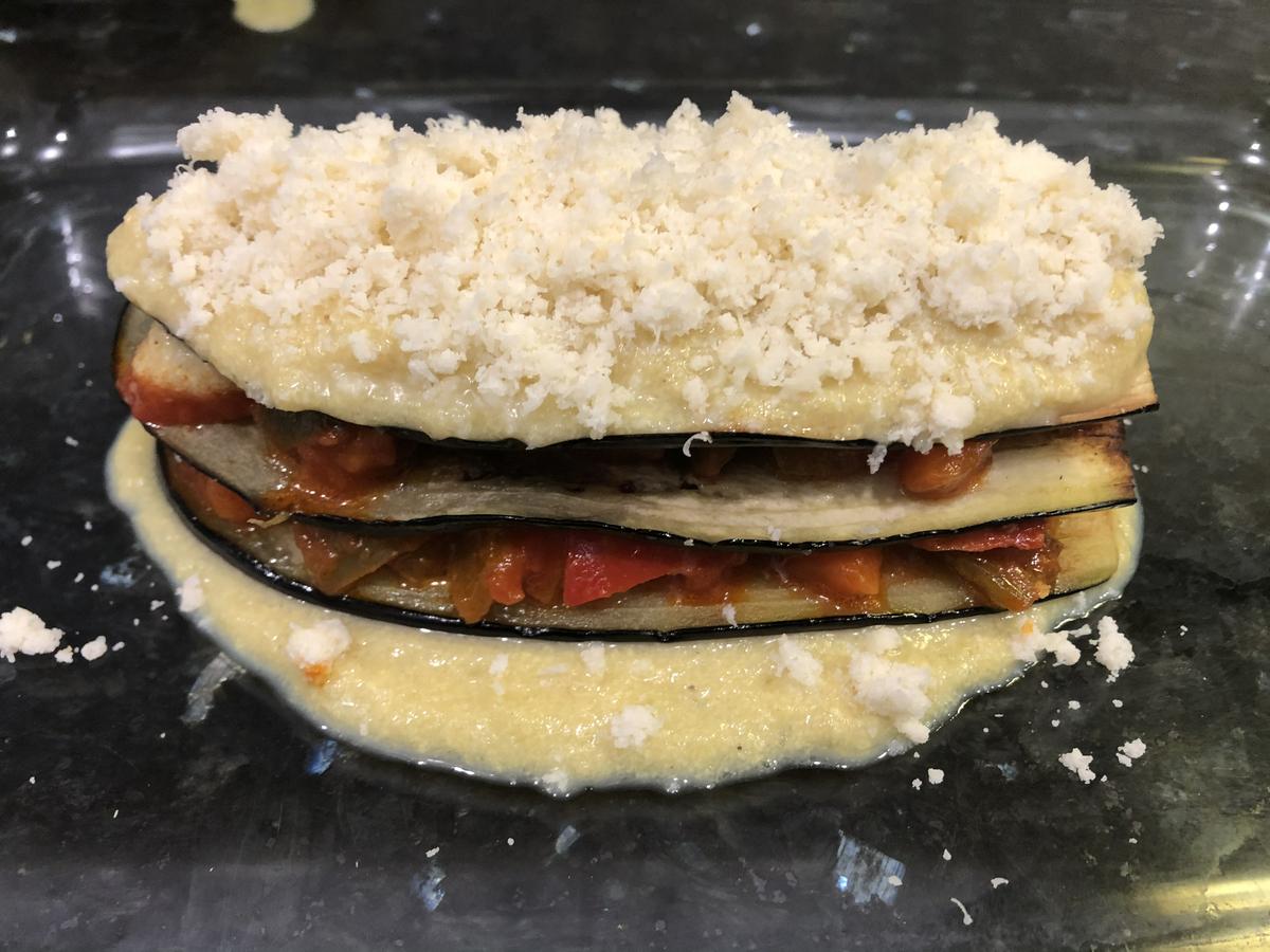 Lasaña de Berenjena y Hortalizas con Bechamel de Calabacín