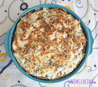 - Pasamos entonces a montar la lasaña. Para ello empezamos poniendo una capa de berenjenas. A continuación, añadimos el relleno de salmón y terminamos con un poco de requesón. Seguiremos haciendo capas hasta terminar con una de berenjena, en la que pondremos más requesón, hasta cubrir todo o casi todo, y por último espolvorearemos con la mozzarella y un poco de orégano. Metemos al horno a gratinar unos 10 minutos, según la fuerza del horno hasta que obtengamos el tono dorado o tostado deseado.