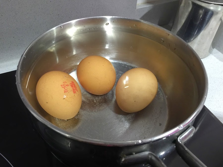 1. Para empezar coceremos los huevos, necesitamos dos huevos duros. Los pondremos dentro del agua fría y los pondremos en el fuego. Desde el momento que el agua empiece a hervir contaremos 8 minutos, con este tiempo quedan perfectos A partir Los cocemos y dejamos que templen a temperatura ambiente hasta que los necesitemos.