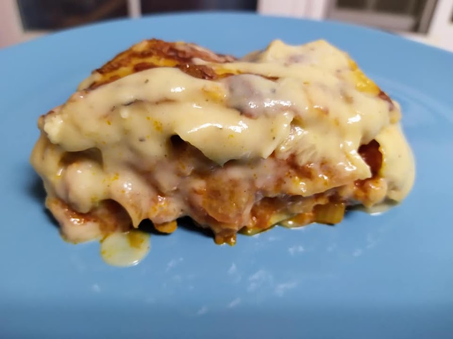 Tampoco lleva pasta, las láminas de la lasaña son de calabacín, le da un toque crujiente super rico!!!