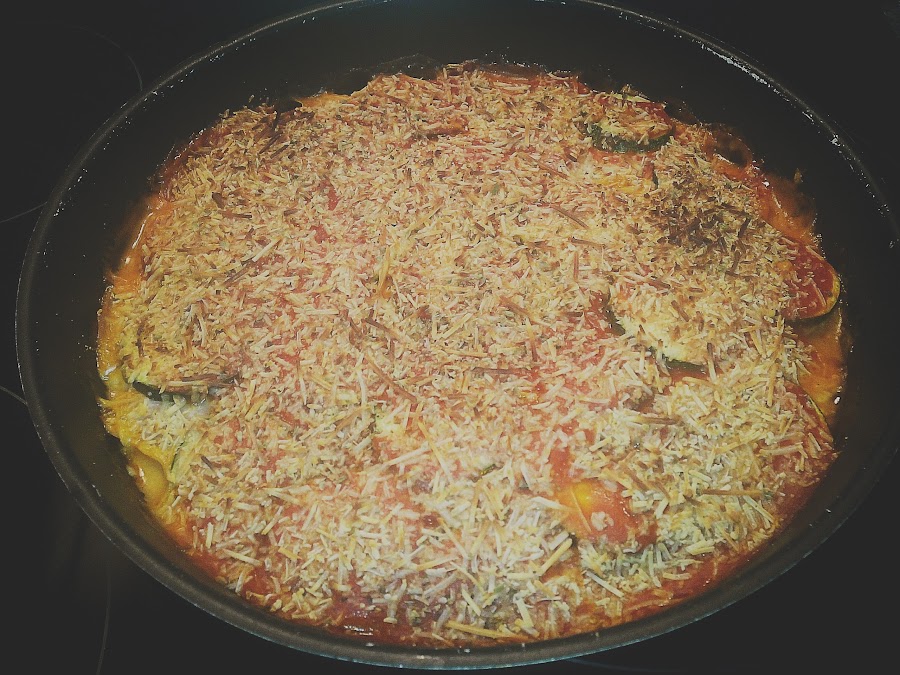 Si vemos que se empieza a tostar demasiado la parte de arriba podemos taparla un poco con papel de aluminio hasta que el calabacin este tierno.