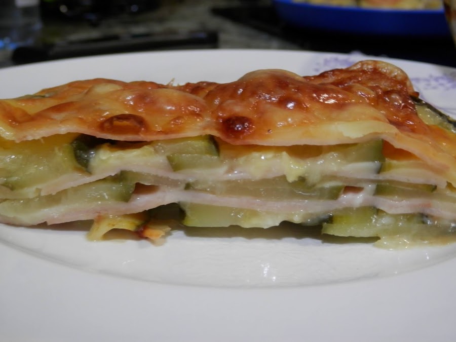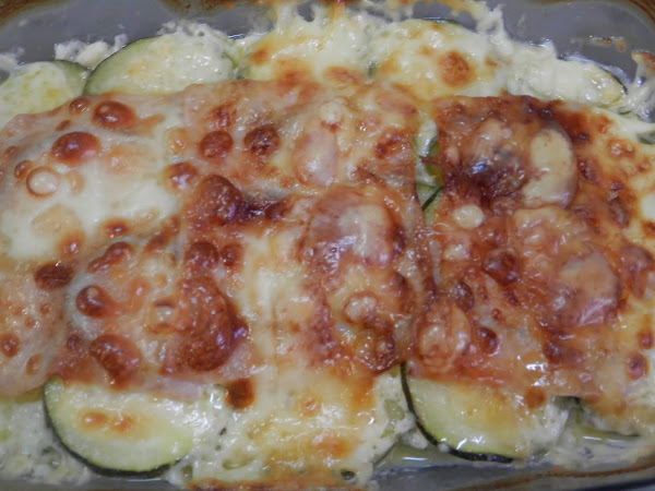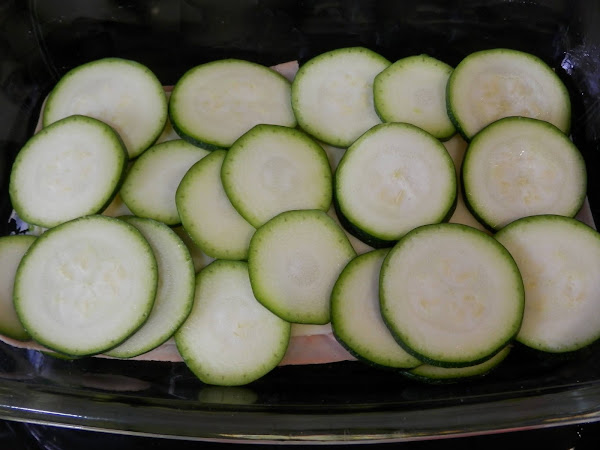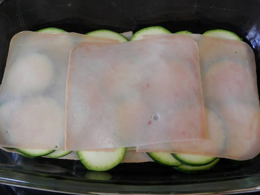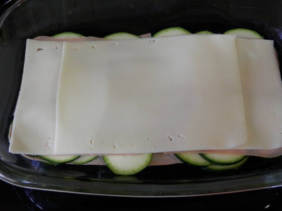 Así hasta que termines, dejando arriba una capa de calabacín a la que añadiremos un poco de queso por encima.