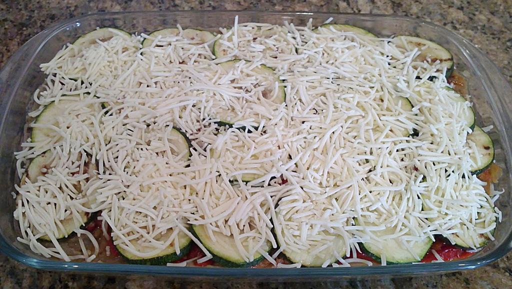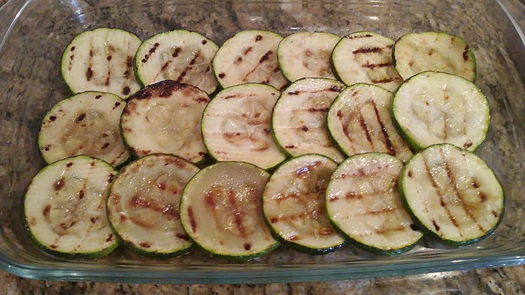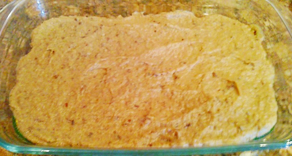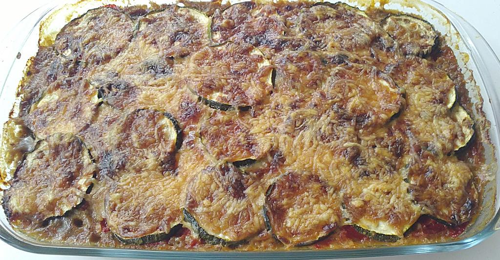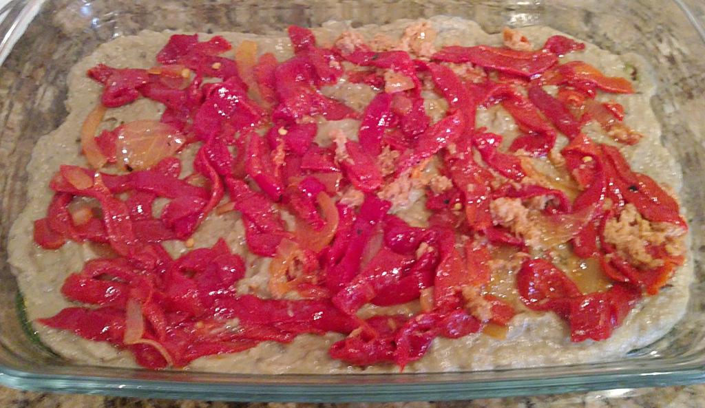 Lasaña de calabacines, pimientos y paté de berenjenas
