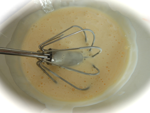 Coloca las yemas en un bol y mézclala con la nata (crema de leche) "especial cocina" y una poquita de sal fina. Reserva.