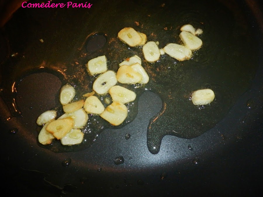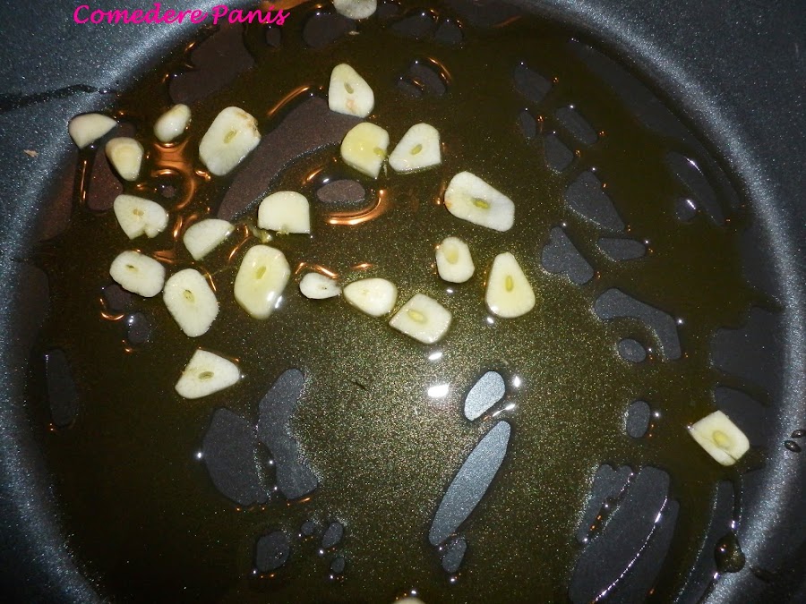 Laminar los dientes de ajo y dorarlos en una sartén con aceite de oliva.