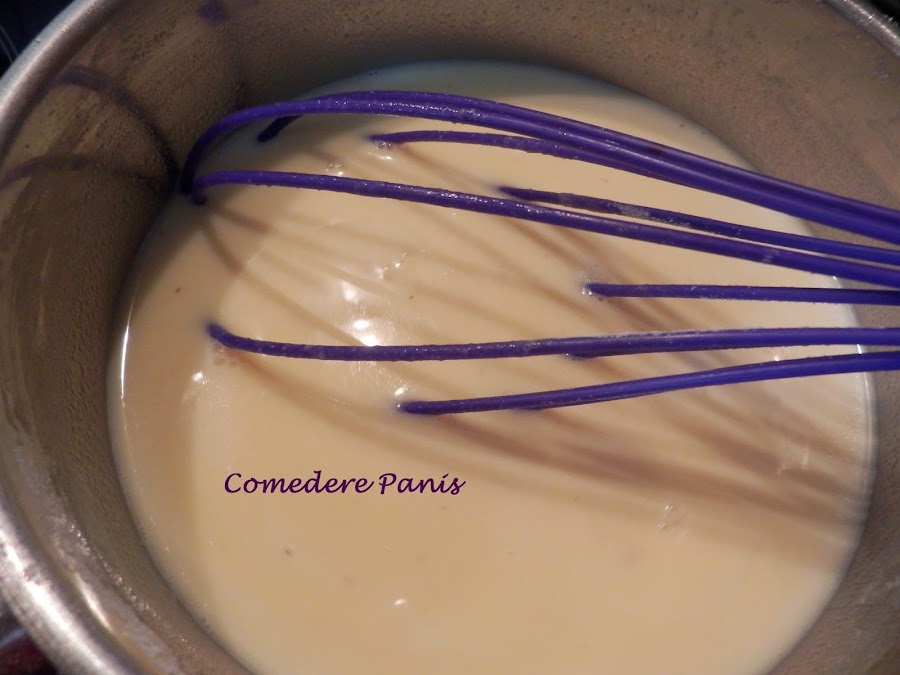 Agregar la leche y continuar removiendo mientras a fuego lento la salsa va espesando pero no demasiado porque al enfriarse espesa algo más.