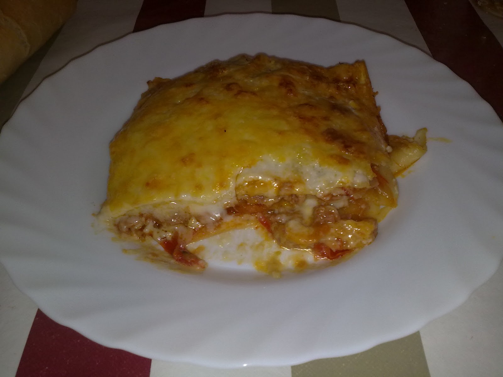 En un principio,esta receta seria para hacer una lasaña de 3 pisos pero yo solo pude hacer 2 porque la fuente de cristal que tenia para hacer lasaña se rompió y tuve que usar una mas ancha por lo que en 2 pisos me lo llevo todo.Aun así salio buenisima.Al tajo.
